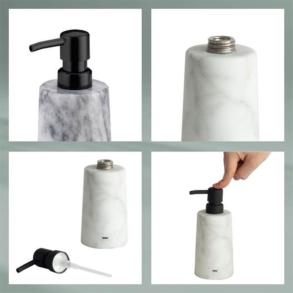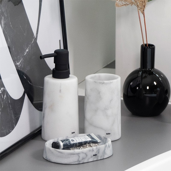 Ако харесвате стилния дизайн за баня в семпли цветове, серията Varda може да бъде много подходяща. Черно-белия дизайн веднага привлича вниманието. Тъй като са изработени от естествен мрамор, е възможно да има фини разлики в шарката на продуктите от тази серия.