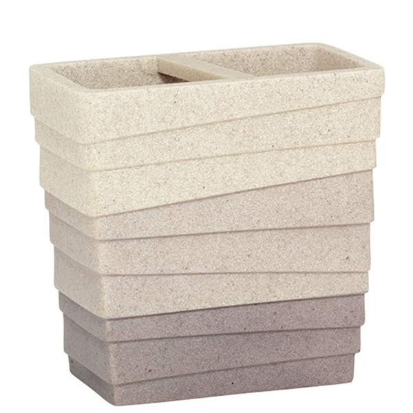 Търсите интересни и различни дизайни за обзавеждането на Вашата баня? С малко въображение в дизайна на тази поставка за четка за зъби могат да бъдат интерпретирани 3 различни слоя скала или пръст. Цветовете са фини, светли, бежови тонове.