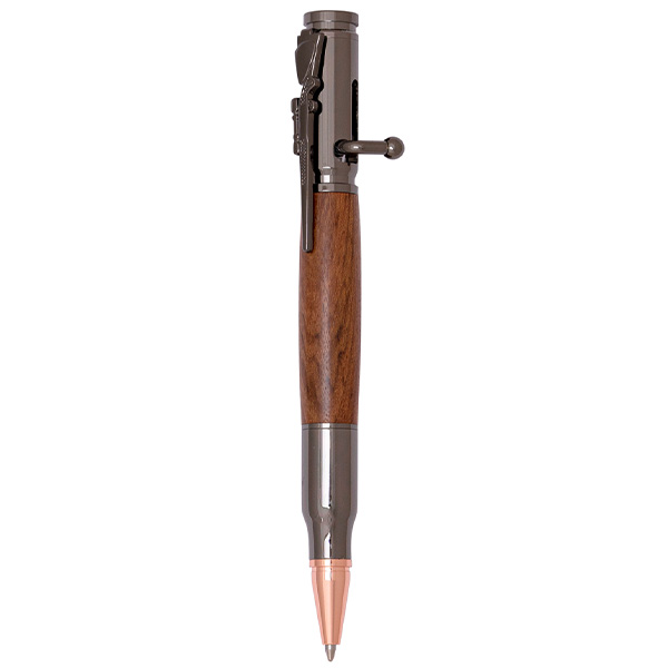 . Химикалката има клипс с формата на пушка и разполага с уникален механизъм, който имитира действието на презареждане, добавяйки елемент на интрига и забавление към всяка употреба.