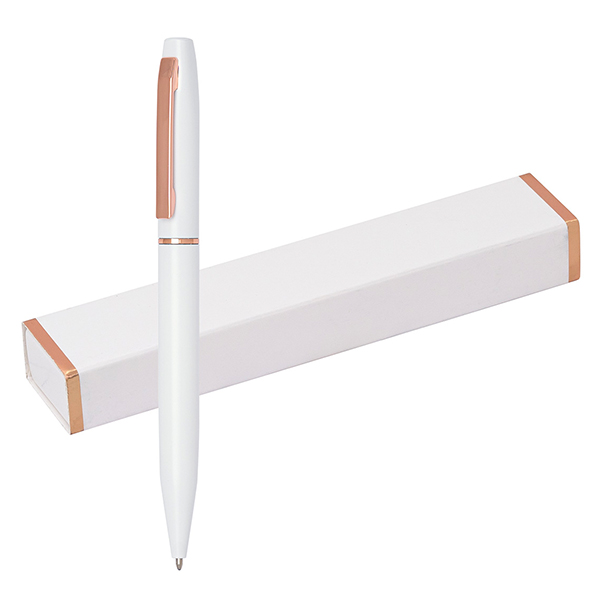 - Елегантна бяла химикалка съчетаваща бял лакиран корпус
