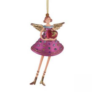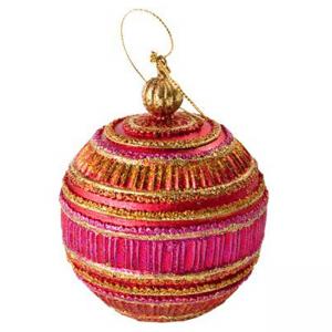 Играчка за елха розова със златни мотиви