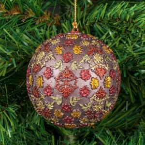 Играчка за елха - топче с флорални мотиви, златен цвят