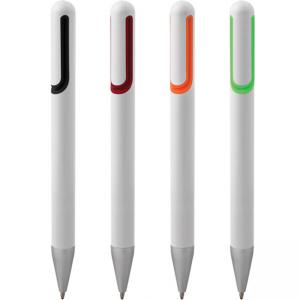 Четири вида бяла пластмасова химикалка с цветни пръстени