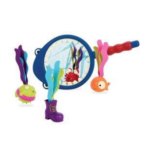 От днес при нас може да откриете и комплект играчки за подводен лов, с които да позволите на децата си усещането за свобода и да насърчите умението им да се гмуркат!С комплект за подводен лов на марката Battat внасяте в лятната си почивка усмивки и добро настроение - 4 играчки за гмуркане с атрактивни форми и цветове, в комплект с мрежа за улавяне с форма на акула! Кога, ако не сега е време да зарадвате децата и да подарите на цялото семейство усмивки!