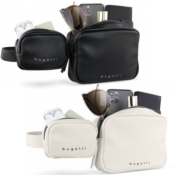 Представяме ви дизайнерска новост от Bugatti - стилна двойна чанта от колекция Almata, която можете да носите в ръка, на колана или около тялото. Almata Waist Bag е многофункционална чанта за колан 2 в 1. Аксесоар с изискан дизайн, който се състои от елегантна каишка с ширина 3 см и две отделни чанти. Можете да използвате по-малката като ключодържател или портфейл, по-голямата дамска чанта предлага идеалния размер за вашия смартфон, документи или дневник A6. Лесна е за поддръжка и с удоволствие ще служи като козметична чанта/калъф. Можете да носите всеки елемент поотделно или заедно, според настроението и предпочитанията си. Но едно е сигурно! Независимо дали просто излизате в клуба или да празнувате с приятели, всички ще ви завидят! Когато по-малкото е повече... колекцията Bugatti Almata представя минималистични модни аксесоари за свободното време и максимално забавление.