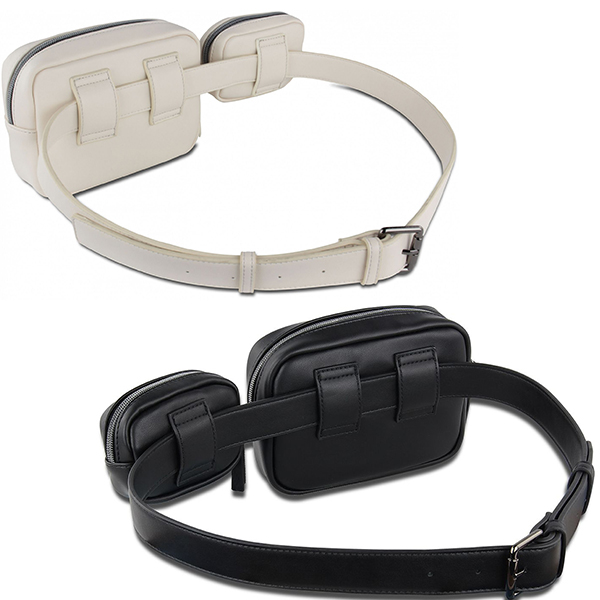 - Основна чанта с цип (прибл. 17 x 13 x 6 см) с едно отворено отделение вътре; отзад две каишки за захващане на колана