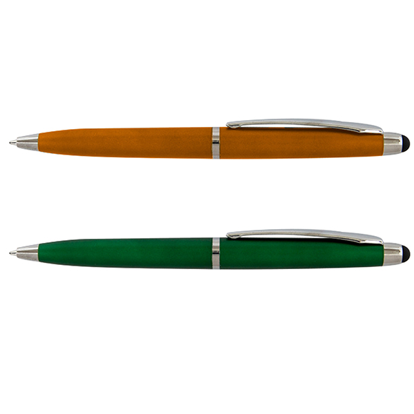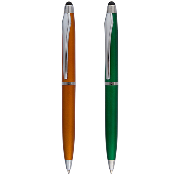 - Химикалката разполага с метален клипс, цветно тяло, хромирани елементи, накрайник за тъчскрийн дисплеи и въртящ се механизъм за пълнителя
