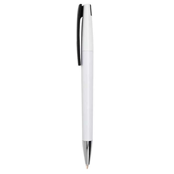 • Химикалката разполага с пластмасов клипс с голяма печатаема площ,  въртящ се механизъм за пълнителя и хромиран елемент