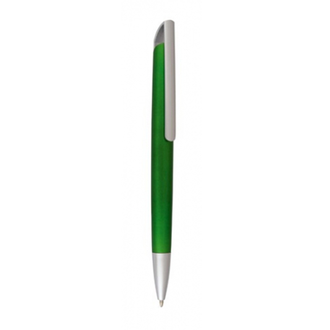 - Химикалката разполага с цветно тяло, пластмасов сребрист клипс с печатаема площ и хромиран елемент