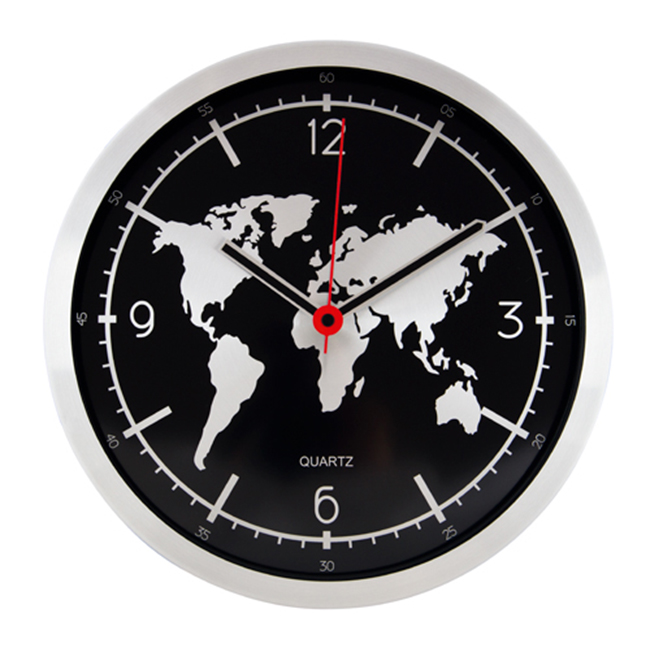 Метален стенен часовник - Световна карта