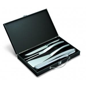 Страхотен дизайн, който ще допринесе много очарование и наслада при приготвяне на Вашето барбекю. Комплектът се състои от нож, вилица, щипка, шпатула, всички на необходимата дължина от 34-38 cm.