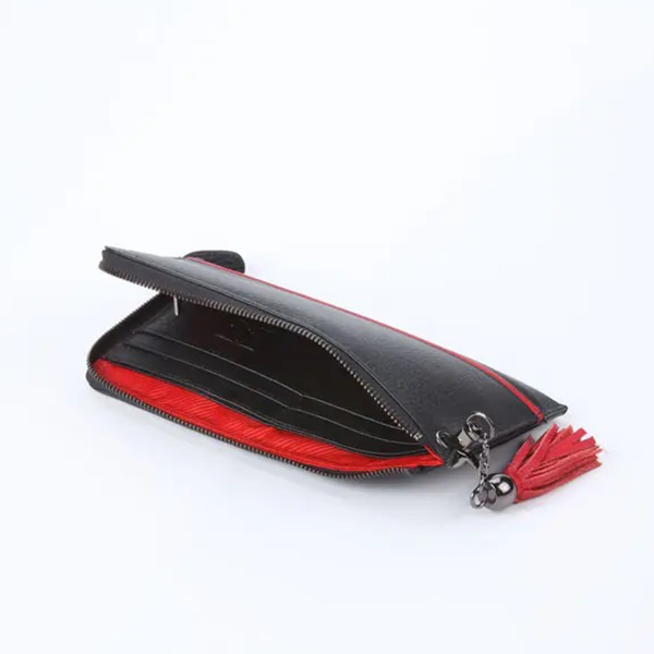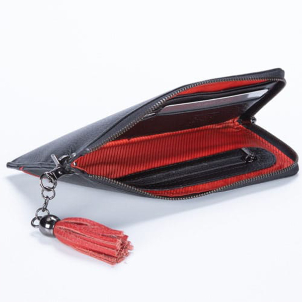 Дамски портфейл с външен цип, пискюл и кант.