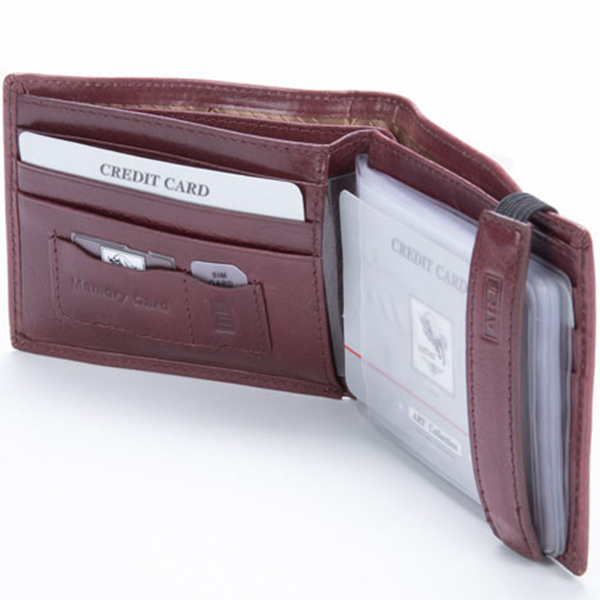 Малък портфейл с вътрешен визитник и ластик, без монетник размер.
