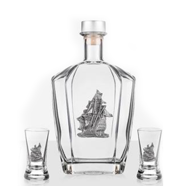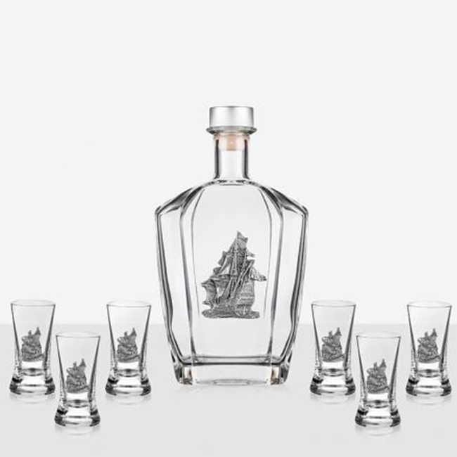 - Сет с 6 чаши + бутилка с илюстрация на Кораб