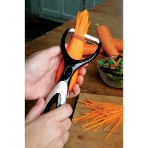 - Назъбеното острие е за меки плодове и зеленчуци, като киви и домати, а с третото може да изрязвате тънки ленти жулиени, идеални за ястия и салати.