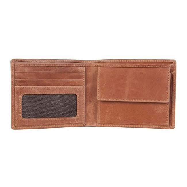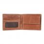Компактен портфейл, направен от естествена телешка кожа. Разполага с джоб за монети, двойно отделение за банкноти и две джобчета за кредитни карти или визитки. Класически елегантен портфейл, подходящ подарък за стилни господа.