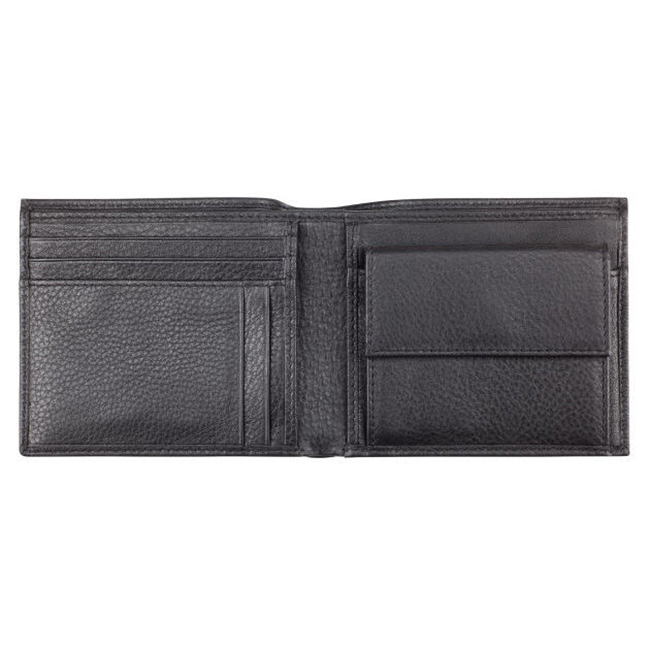 Направен е от висококачествена естествена кожа. Портфейла има две прегради за банкноти, отделения за кредитни карти и пет джоба за визитни картички.