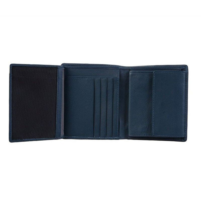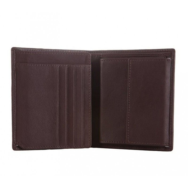 Практичен и удобен портфейл, направен от висококачествена телешка кожа. Разполага с осем джоба за визитки, кредитни карти или други пластики, джоб за монети и две прегради за банкноти.