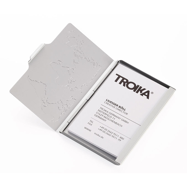 • Материал: алуминиев с релефна карта на света за 10 визитни картички