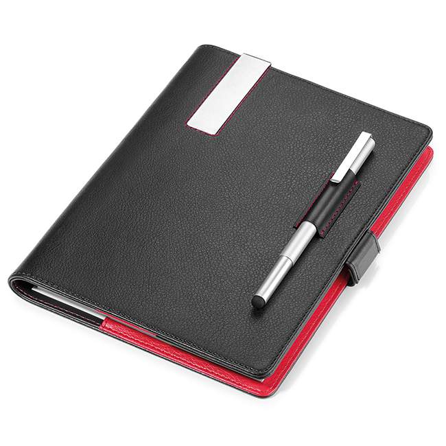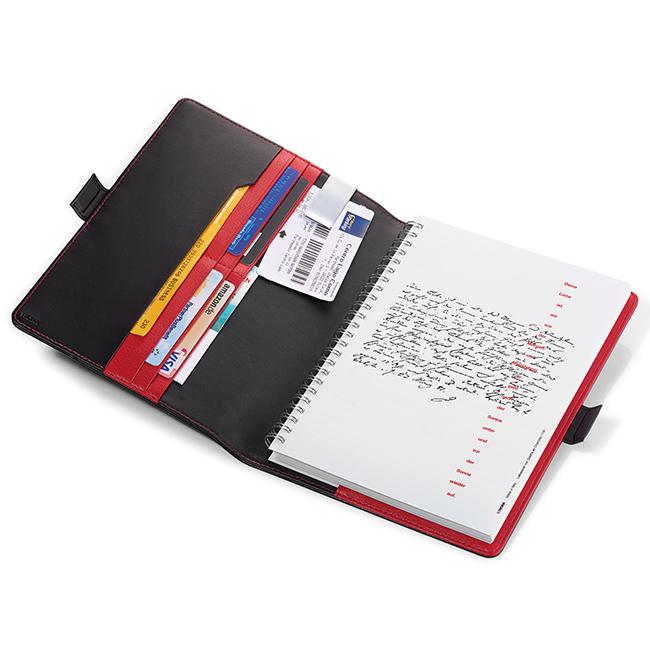 - Формат А5 със сменяем тефтер със спирала, метален клипс хром гланц, с отделение за 8 визитни картички, с преграда за документи и магнитно закопчаване.