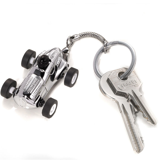 - Материал: метал, покритие хром, с пружинен механизъм за движение (дръпни назад - пусни) със сменяема верижка прикрепена към халката за ключове.