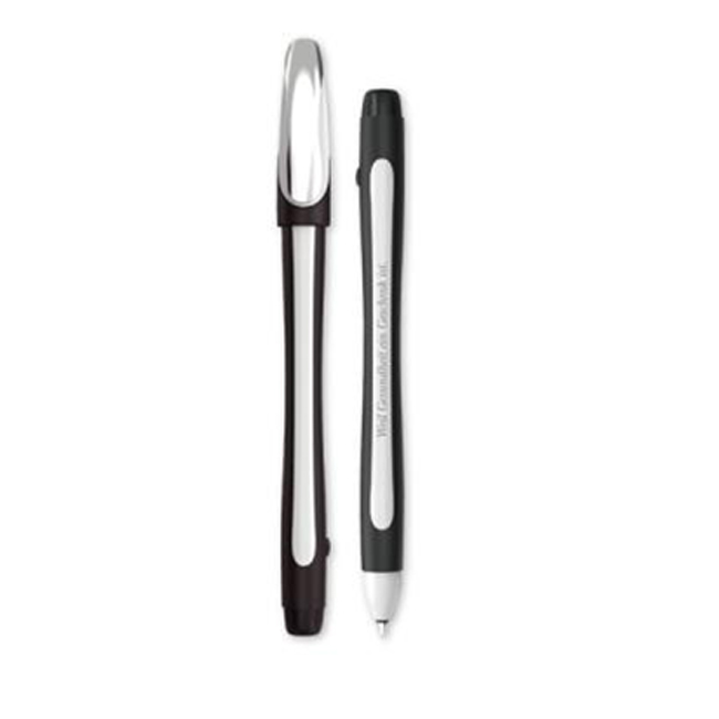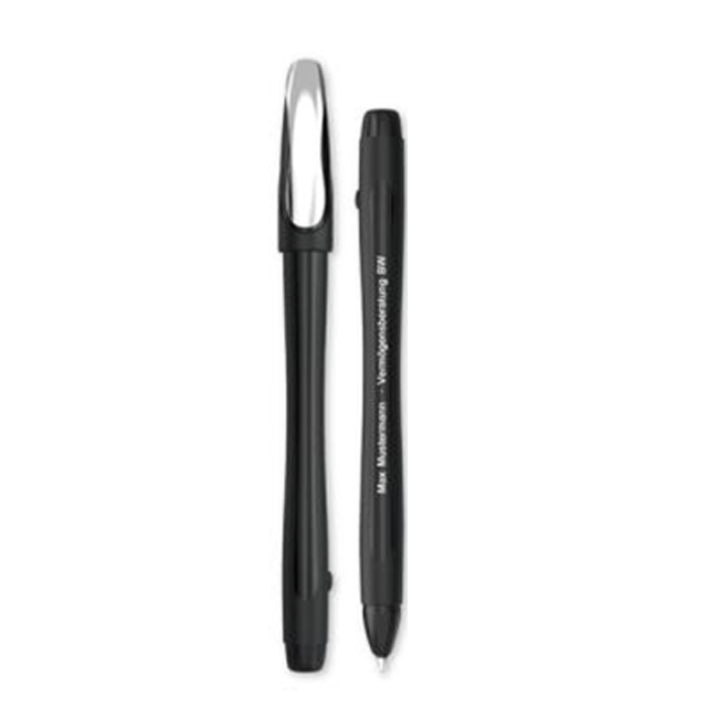 - Химикалка с капачка, ергономична форма, метален клипс, метален връх на тялото и гумирано тяло.