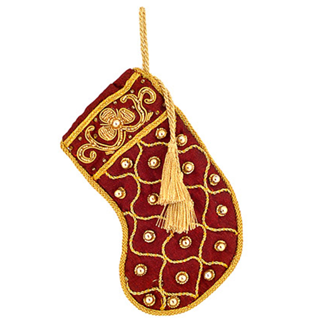 Коледно чорапче бордо с златисти мотиви