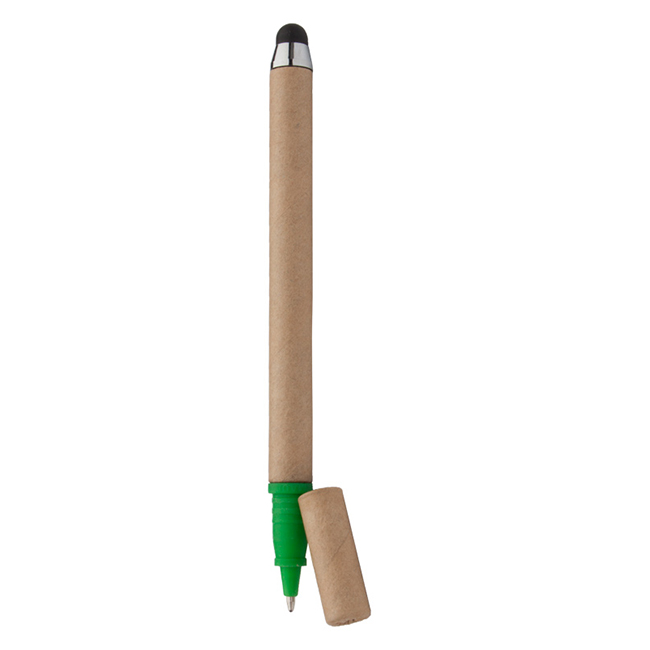 - Еко химикалка от рециклирана хартия със зелен връх и капачка