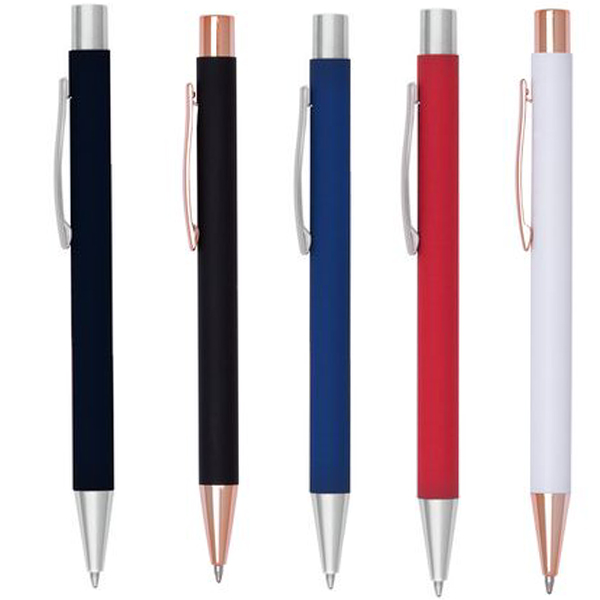 - Метална рекламна химикалка с щракащ механизъм Гумирано покритие