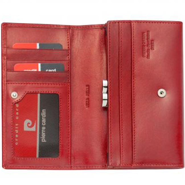• Дамско кожено портмоне с отделение за банкноти, карти и монетник.