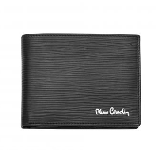 • Мъжки черен портфейл от естествена кожа с релеф.