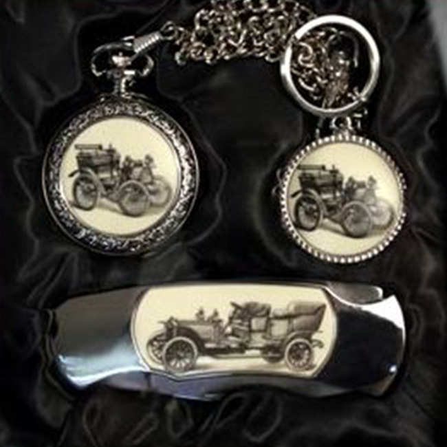 Мъжки комплект - джобен часовник, нож и ключодържател