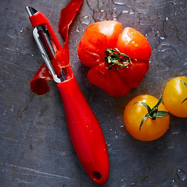 Висококачествено назъбено острие за бързо и лесно белене. Ергономична дръжка е така проектирана, че да приляга удобно в дланта. Белачката разполага със заострен връх за отстраняване на нежеланите части от доматите.