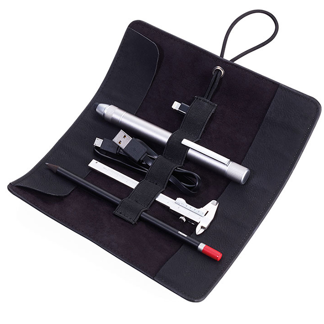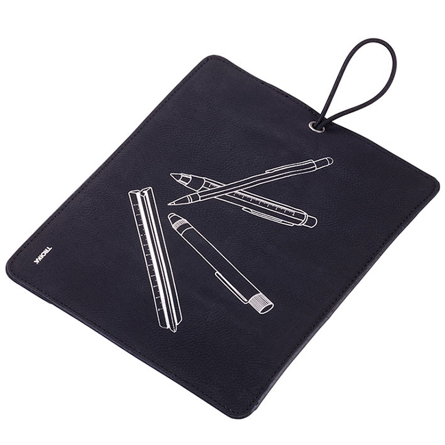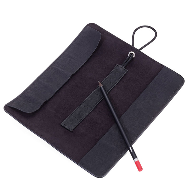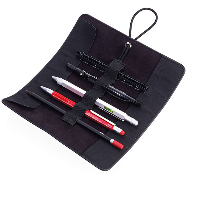 - Калъф за моливи Troika с еластична лента за закрепване.