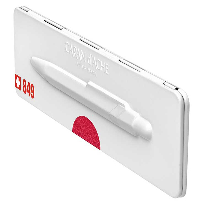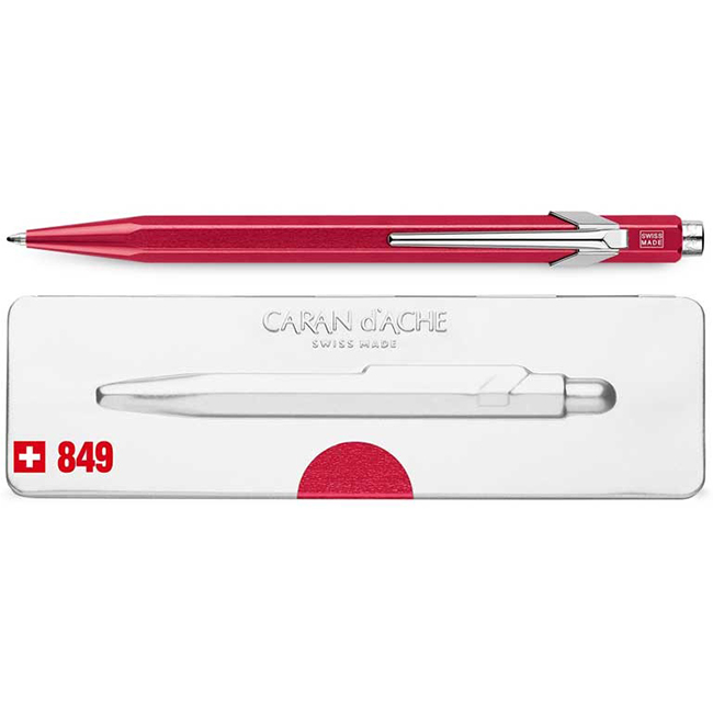 Автоматичната химикалка Caran d' Ache 849 Pop Line Collection е с червено на цвят (с металически отблясък) и познатата и непроменена шестоъгълна форма на алуминиевото тяло, но в нови ярки и индивидуални цветове.