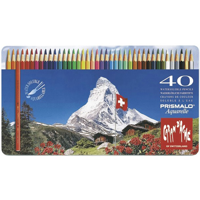 - Комплект 40 цветни акварелни моливи Caran d'Ache Prismalo в метална кутия.