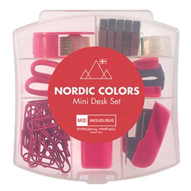- В комплектът на Miquelrius от серията Nordic Colour са включени най- необходимите и често използвани дребни канцеларски аксесоари в мини варианти: