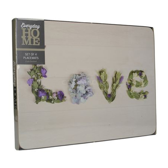 - Подложки за чаша с флорален дизайн и надпис Love.