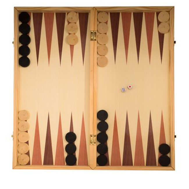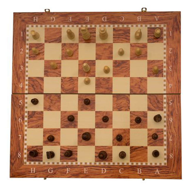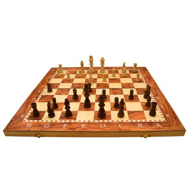 • Класически дървен комплект с шах и табла. Закопчалките са метални, а пуловете и фигурките са дървени.