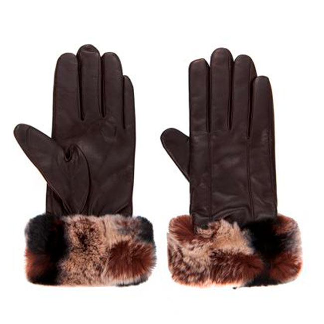 Дамски ръкавици с кафява периферия, размер 8