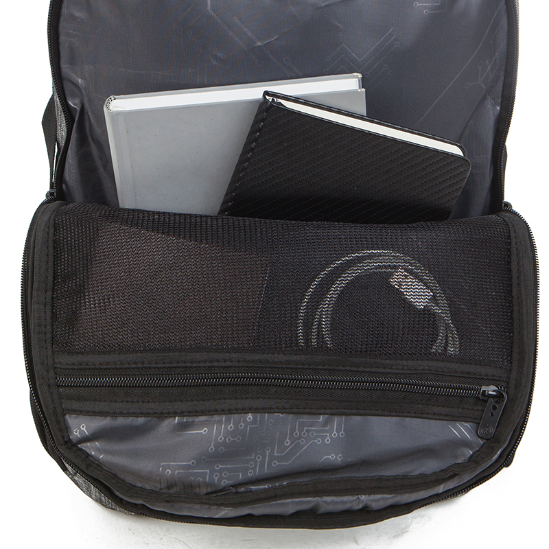 -Основно отделение за лични вещи; -Външно отделение органайзер с цип;