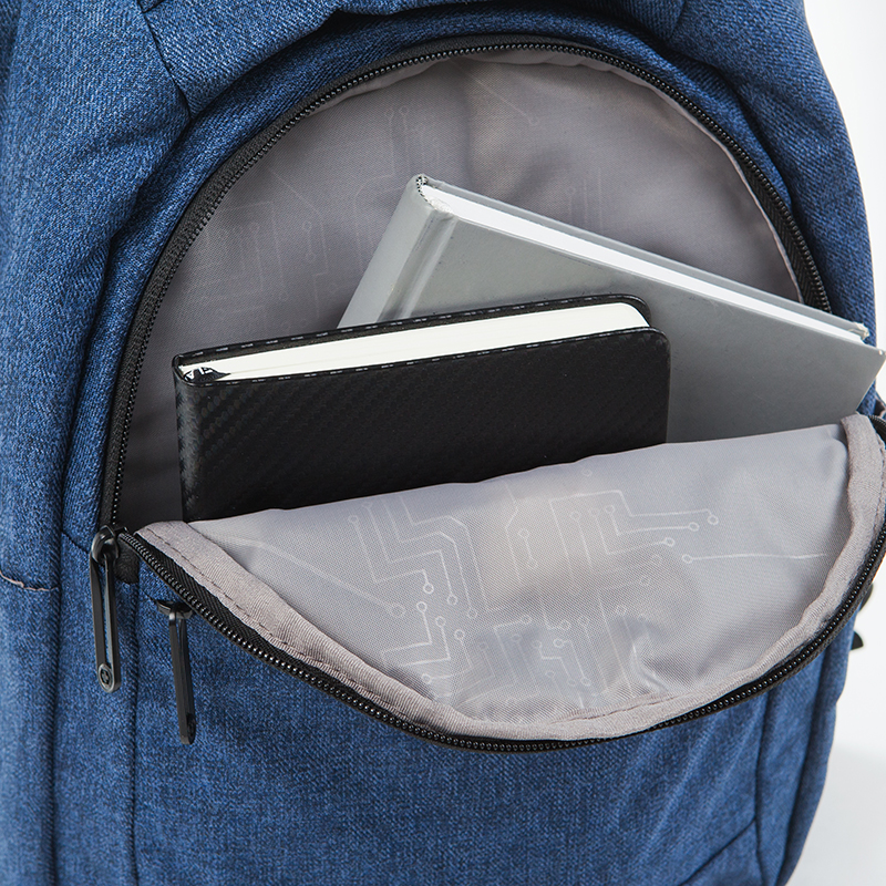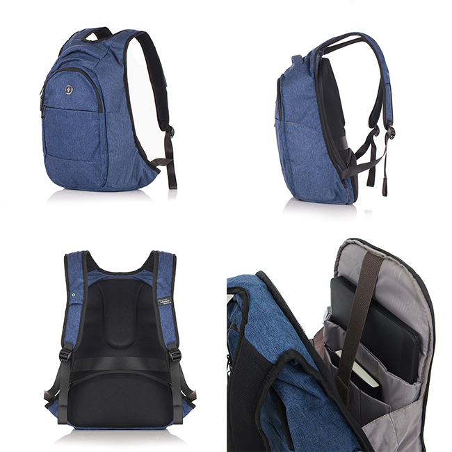 Удобства на раницата: Наличие на USB port; RFID защита за безконтактни карти; Основно отделение за лични вещи; Отделение за портфейл/портмоне; Защитено отделение за лаптоп 14 инча, таблет и мобилен телефон; Вътрешно отделение за батерия Power Bank; Външен джоб с цип; Джоб за бутилка/чадър; Джоб за поставяне върху дръжката на куфар; Джоб за кабел; Ципове с лого Swiss Digital; Къса дръжка; Ергономични регулиращи презрамки с USB port; Анатомичен гръб; Водонепропусклив материал.