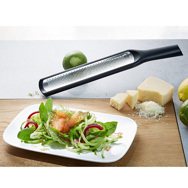За настъгване на пармезан, джинджифил, шоколад, лимонова кора, канела и други твърди храни. Изключително острите лазерно изрязани остриета гарантират безпроблемно настъргване. Режещата повърхност е дълга и извита навътре, което прави настъргването бързо, ефективно и безопасно.