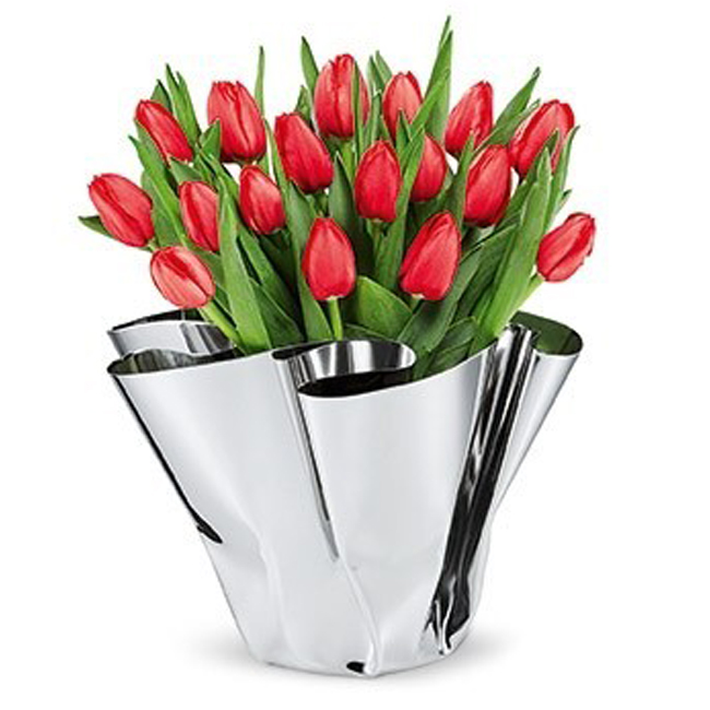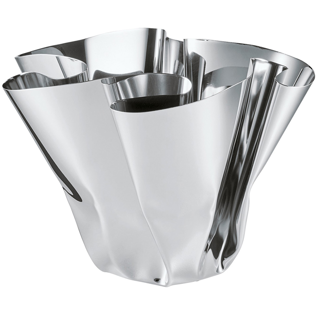 Ръчно нагънатата ваза Maregaux на Philippi се прелива в елегантни вълни, като театрална завеса.