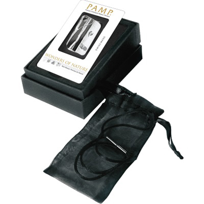 Сребърното кюлче-медальон идва в елегантна, черна кутия, запечатана със сертификат. Стилният медальон има сатенена връзка, с която той може да използван като всекидневно напомняне за красотата и деликатността на природата.