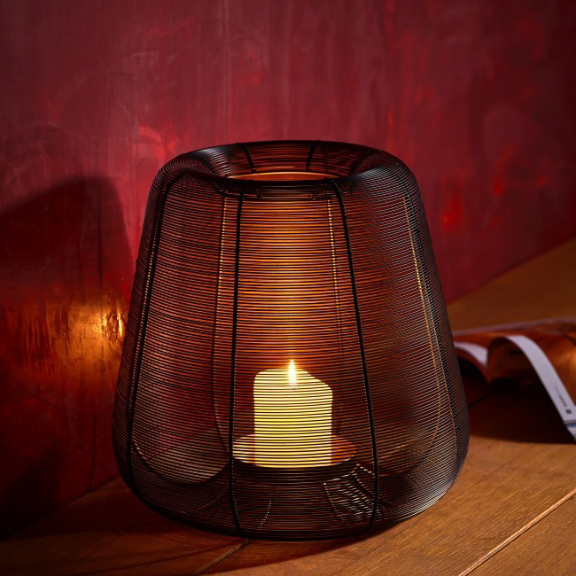 Изкусно направена от стоманена тел, LUANDA ще Ви предложи богата естествена светлина от свещи.