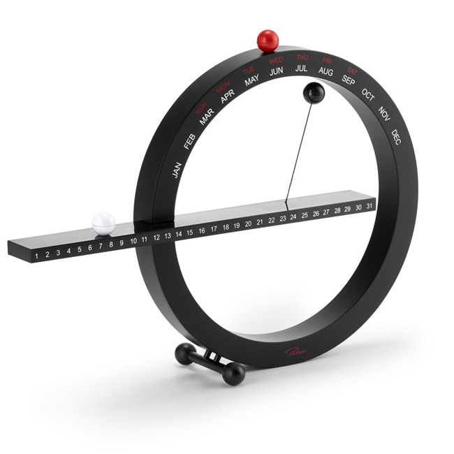 Със своята впечатляваща конструкция той работи много лесно чрез магнитните си топки (червена за дните, бяла за датата и черна за месеца).