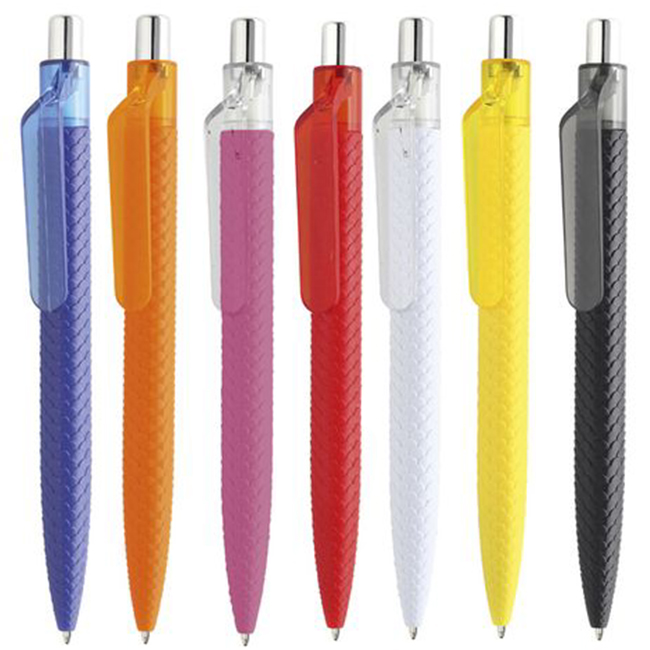 Рекламна химикалка от висококачествена пластмаса с релефно тяло и цветен, плосък клип. Структурата на тялото е с шарка на драконова кожа. Подходяща за брандиране върху клипа.