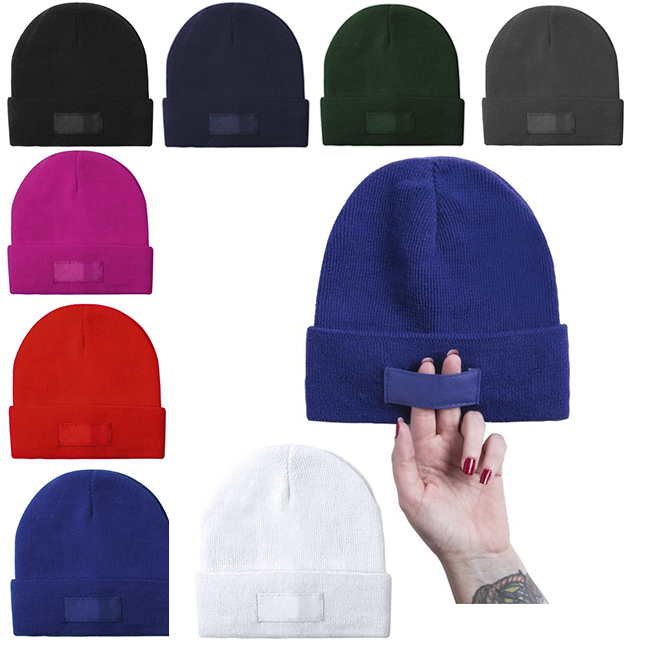 Рекламна зимна шапка от полиестер с място за печат. Подходяща за бродерия или трансферен печат.