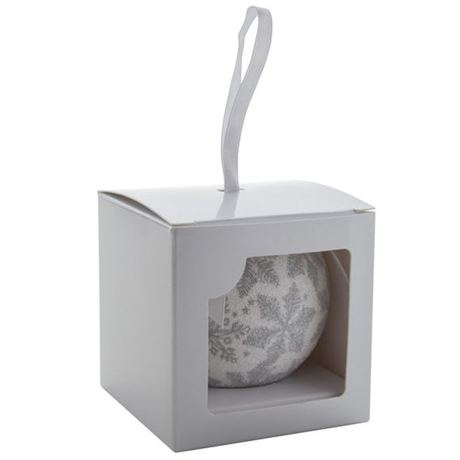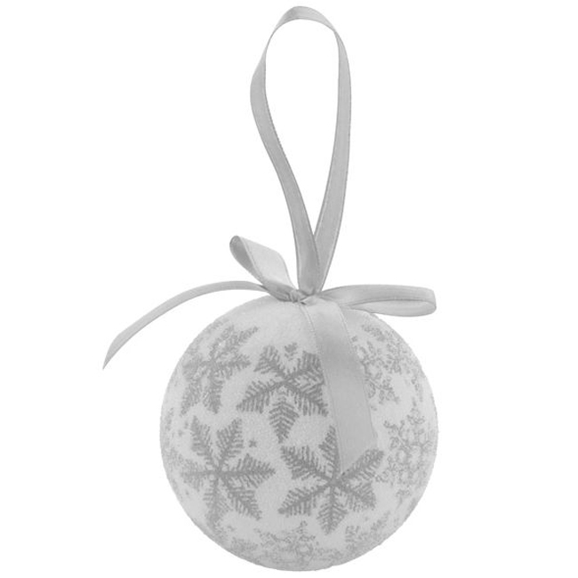 • Коледна топка в перлен цвят със сребърни снежинки.